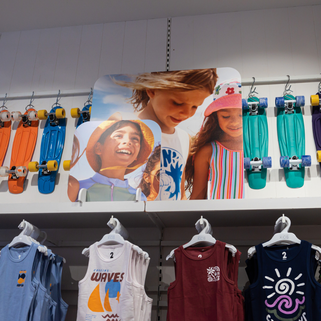It was a privilege to produce this campaign’s printed assets that brought Cotton On Kids' collaboration with Ryhia Dank to life in stores nationwide. Our team's dedication to quality and attention to detail ensured that every print was a masterpiece, reflecting the vibrant spirit of the swimwear collection.
