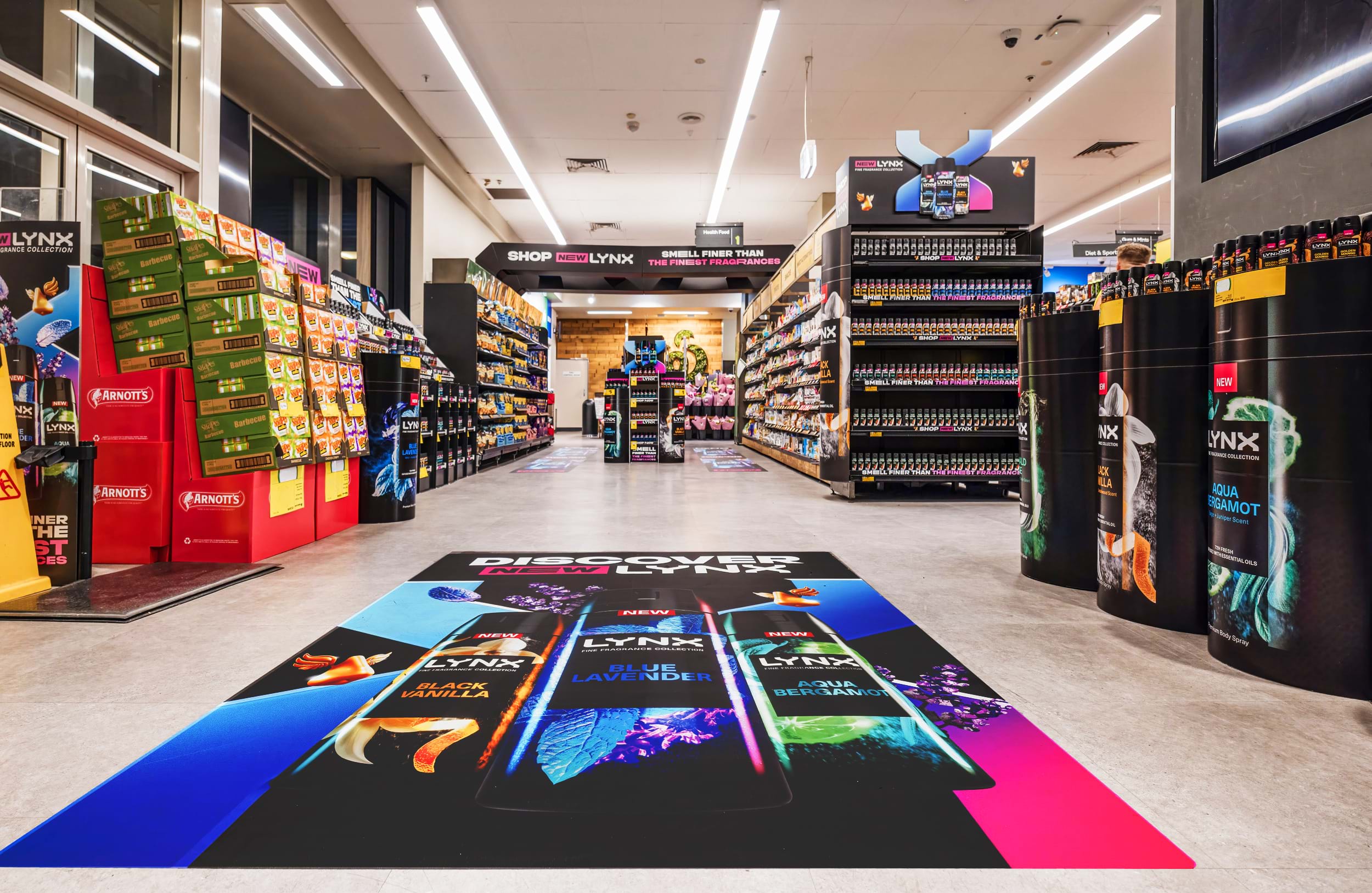 Styleprint partnered with Cartology - Part of the Woolworths Group to execute a dynamic 24-hour LYNX Fine Fragrance Collection takeover at Woolworths Town Hall in the heart of Sydney’s CBD. The challenge was to create a captivating in-store experience that would engage shoppers at every turn, all within a tight timeframe.
