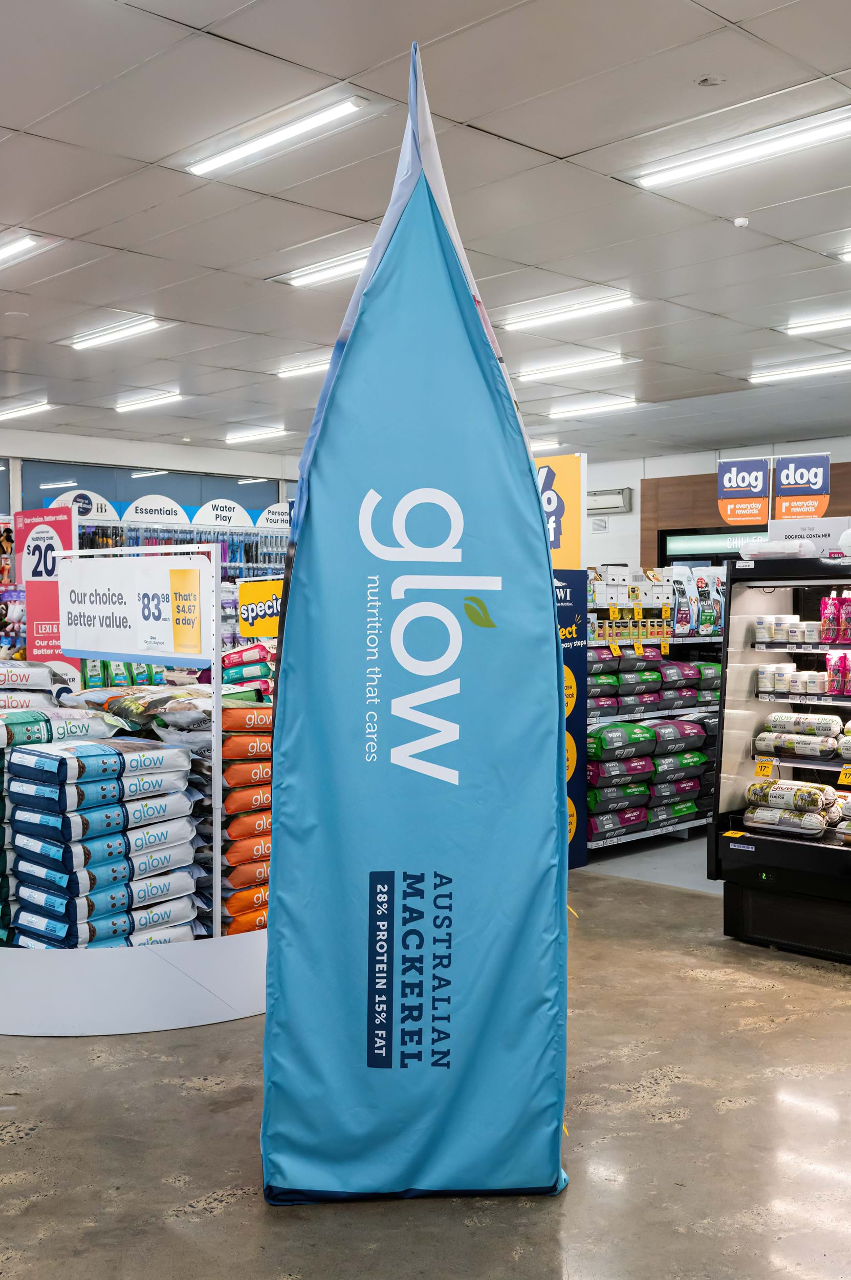 Oversized and attention grabbing – these freestanding dog food bag displays turned heads in select Petstock stores.